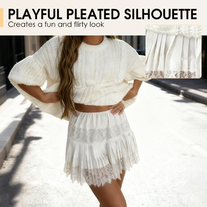 Chic Pleated Lace Trim Mini Skirt