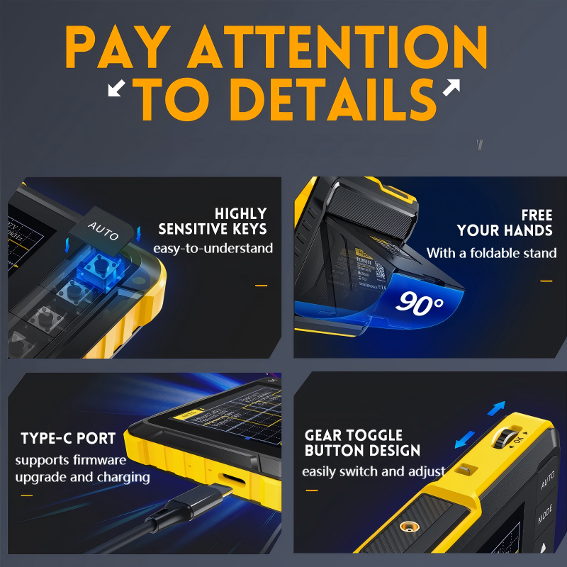 HD COLOR DISPLAY: The vibrant color screen delivers a crisp, clear view of your waveforms and measurements. This makes data easy to read and analyze, even in various lighting conditions.